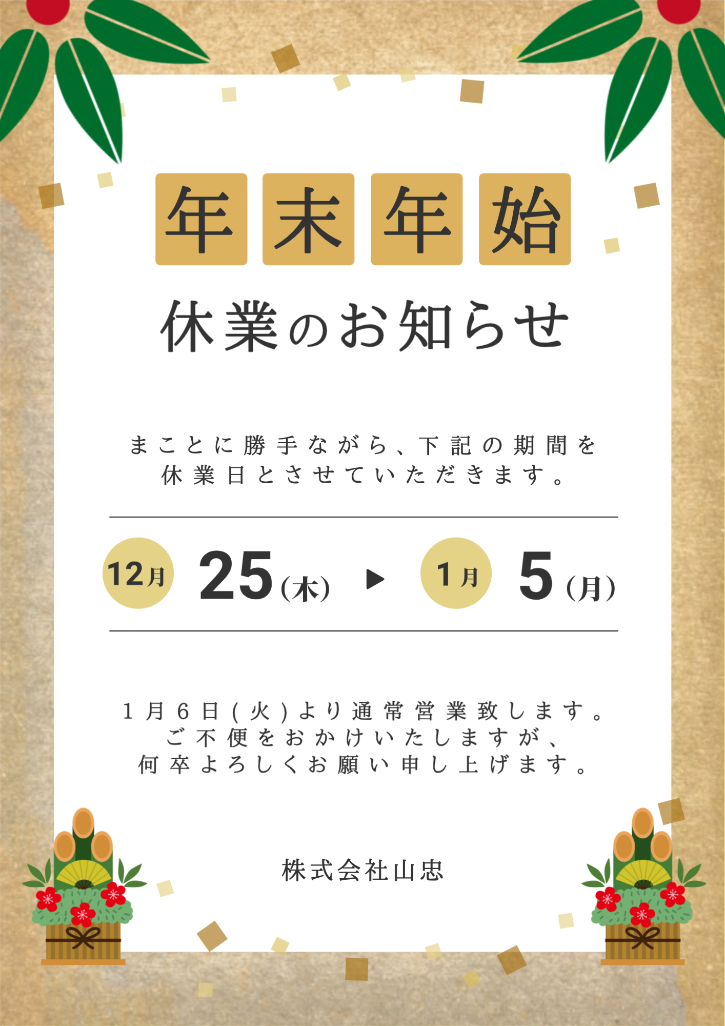 2024.12.20 年末年始休業のお知らせ